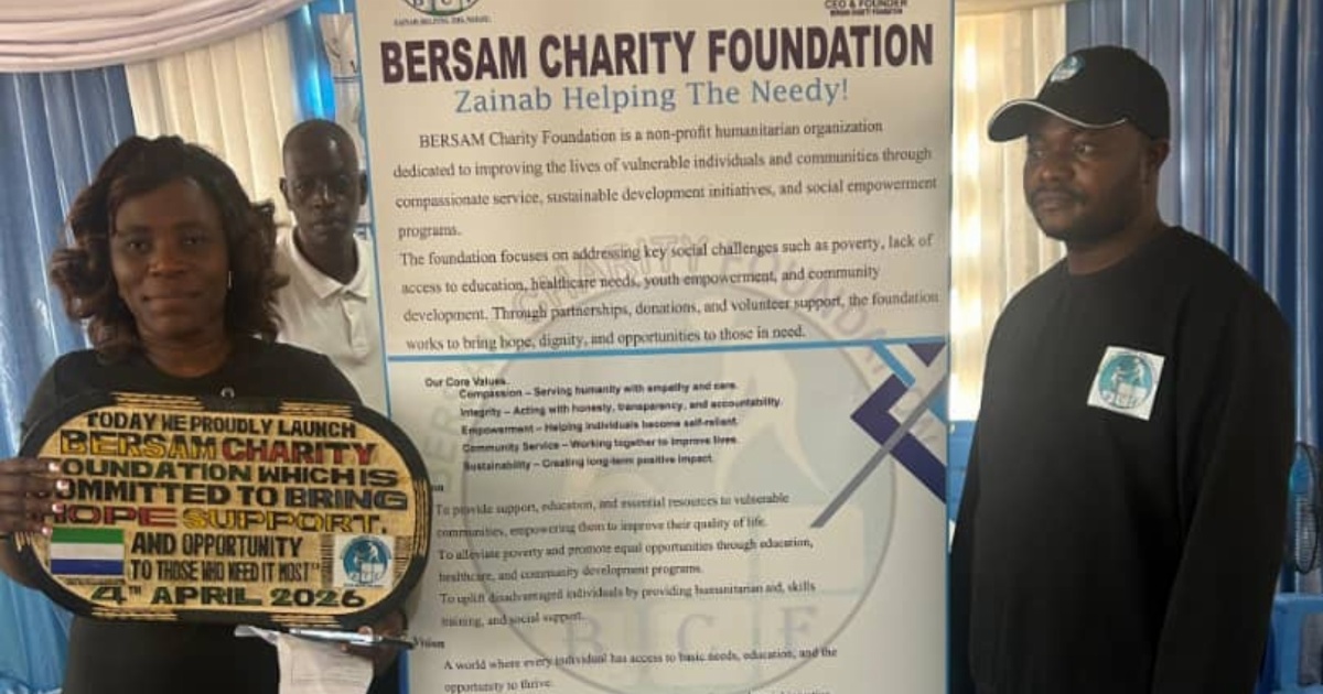 The BERSAM Charity Foundation was officially launched on Saturday 4 April 2026, at the Divine Academy Senior Secondary School in Freetown. The Launching ceremony was a colorful and impactful ceremony, marked by a generous cash donation to school pupils as part of its commitment to supports education and community development.
